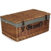 Finished in Full double steamed willow with dark brown leather straps and metal chains with or without a removable cotton lining. Attractive looking . High Quality, Well made Basketware. Natural product so dimensions can vary slightly. Manufactured from sustainable materials. Colours and finish could vary. Size Depth 37 x Height 26 x Width 56cm Weight 2.2kg Material Wicker | Red Hamper Wicker 56cm Double Steamed Picnic Hamper Basket with Cotton Lining in Grey - Manufacturers part number: EH151GRY
