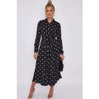 Elevate your style with this elegant Black Polka Dot Print Midaxi Shirt Dress, a timeless addition to your wardrobe. Featuring a charming polka dot pattern and a flattering midaxi length, this dress combines classic sophistication with contemporary appeal. Perfect for transitioning from day to night, it's ideal for office wear, weekend outings, or evening social events. Pair it with heels for a formal look or sandals for a casual, chic vibe. This versatile piece is a must-have for those seeking a stylish, all-occasion ensemble. | Love Sunshine Women's Black Polka Dot Print Midaxi Shirt Dress | Size: 10 - Manufacturers part number: Love Sunshine_5061049347551