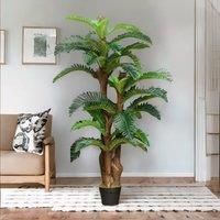 Realistic Palm Tree Design: This artificial plant captures the essence of a tropical palm with its lifelike leaves, adding a touch of exotic beauty to any indoor or outdoor setting. Superior Quality Construction: Made from premium plastic in rich green tones, this artificial palm tree boasts a natural texture for an authentic appearance. The inner metal wiring ensures easy shaping and enhanced durability, preventing breakage. Included Nursery Pot: Ready for immediate display, the artificial plant comes ...