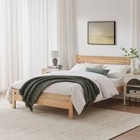 Our Declan solid wood double bedframe is perfect for bedrooms of all styles. A simple and classic bed design of unfussy straight lines gives this a definite rustic Scandi look, and keeps it contemporary. This bed is a great staple that will last through trend and decor changes; we love a versatile and timeless piece that still manages to land that modern look. Constructed from sustainably sourced solid pine and painted with a gorgeous finish, this bedframe is sturdy and made to last. Sat slightly raised on squared legs, there's room for storage underneath. Simple assembly required with easy-to-follow instructions provided. Mattress not included. | FurnitureboxUK Declan Solid Pine Double Bed Frame in Light Oak - Manufacturers part number: FurnitureboxUK_5061064387075