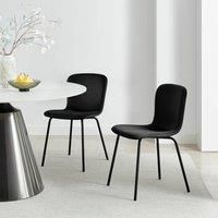 Our Asti velvet dining chairs are a simple, minimalist design of flowing curves. The chair back has a subtle winged, fluted style that hugs the body, an ergonomic design to support you and keep you comfy. The chair back gently tapers at the base before widening into the chair seat in a continuous flowing shape. Upholstered in gorgeous soft touch velvet, sat on 4 straight matte black powder-coated legs. This pair of dining chairs will look fantastic in a whole range of modern dining rooms, whatever your style. Also available in other colours and materials, so check out the full Asti chair range today. | FurnitureboxUK 2 x Asti Black Velvet Dining Chairs - Manufacturers part number: FurnitureboxUK_5061064388256