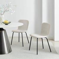 Our Asti cream linen-look fabric dining chairs are a simple, minimalist design of flowing curves. The chair back has a subtle winged, fluted style that hugs the body, an ergonomic design to support you and keep you comfy. The chair back gently tapers at the base before widening into the chair seat in a continuous flowing shape. Upholstered in stunning cream polyester fabric that has a linen-like weave, sat on 4 straight matte black powder-coated legs. This pair of dining chairs will look fantastic in a whole range of modern dining rooms, whatever your style. Also available in other colours and materials, so check out the full Asti chair range today. | FurnitureboxUK 2 x Asti Cream Linen Effect Dining Chairs - Manufacturers part number: FurnitureboxUK_5061064388263