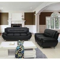 The Saturn Sofa Set is constructed with a PU leather cover that exudes a luxurious feel, while the eucalyptus wooden frame and plywood base ensure durability and stability. S-shaped spring/elastic belts provide added comfort and flexibility, while the foam cushions offer both support and softness for long-lasting relaxation. Its polished chrome legs add a touch of modern sophistication, completing the set with an elegant, contemporary finish. | SquareBoxx Saturn 3 + 2 Sofa Set Grey in Black