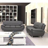The Saturn Sofa Set is constructed with a PU leather cover that exudes a luxurious feel, while the eucalyptus wooden frame and plywood base ensure durability and stability. S-shaped spring/elastic belts provide added comfort and flexibility, while the foam cushions offer both support and softness for long-lasting relaxation. Its polished chrome legs add a touch of modern sophistication, completing the set with an elegant, contemporary finish. | SquareBoxx Saturn 3 + 2 Sofa Set Grey