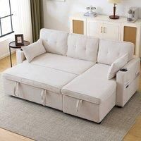 This versatile L-shaped convertible sofa bed is designed for optimal comfort and functionality in any living space, transforming effortlessly from a stylish sectional into a spacious trundle bed or daybed to suit your needs, whether for everyday relaxation or hosting guests. Its innovative design boasts a reversible chaise, allowing flexible left or right-hand configuration, along with integrated internal storage for discreetly stowing blankets and essentials, convenient side pockets for remotes, and bu...