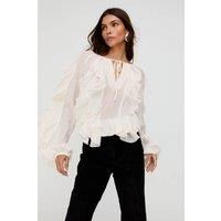 Lily & Lionel Sophie Blouse Size & Fit True to size - order your usual size Regular fit Available in sizes 8 - 16 Details Sophie Blouse by Lily & Lionel Ecru Soft cream hue with all-over ruffle detailing Collarless neckline with tie-front fastening Long sleeves with buttoned cuffs Lightweight woven fabric with fluid drape Material & Care Material Content: 100% Polyester Washing Instructions: Hand Wash Only