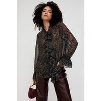 Lily and Lionel Women's Zendaya Ruffle Detail Zebra Print Shirt In Black | Size: 14