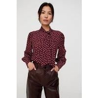 Vintage elegance meets celestial charm in the Fifi blouse, adorned with our burgundy Star print. Featuring a high drop neck with a statement pussybow tie and a delicate keyhole detail at the back, its a timeless piece with a playful twist. Why We Love: High drop neck with statement pussybow tie Burgundy Star print for a touch of celestial glamour Keyhole back detail for an elegant finish Our Fashion Buyer Says: This blouse is my shortcut to instant polish I style it with high-waisted jeans for a relaxed look, or with a satin skirt for evening. | Lily And Lionel Fifi Pussybow Star Print Blouse In Burgundy
