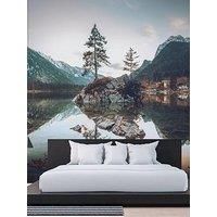 AS Creation Hintersee Digital Mural 350cm X 255cm This mural showcases a breathtaking, serene landscape of a mountain lake at dusk, capturing the stillness of nature in stunning detail. The crystal-clear waters reflect the towering, snow-capped mountains and pine trees, creating a mirror-like effect that enhances the natural beauty. In the foreground, a rocky island with a couple of trees adds depth and a focal point to the tranquil scene, while the warm autumn tones of the foliage contrast beautifully ...