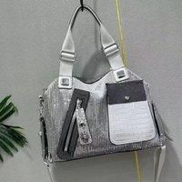 Unleash your inner fashionista with this stunning sequin and croc-embossed handbag. This eye-catching piece features a luxurious sequin exterior that glistens beautifully, complemented by a chic croc-textured front pocket adorned with subtle sparkle. Its hobo silhouette offers ample space for your daily essentials, while the multiple straps provide flexible carrying options. Whether you're dressing up for an evening out or adding a touch of glam to your casual look, this bag is the perfect accessory to complete your ensemble. | PEACH ACCESSORIES Women's Sparkle & Croc Shoulder Bag in Silver