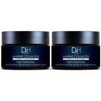 Discover the rejuvenating power of Dr H Marine Collagen Night Moisturiser, expertly crafted to hydrate and revitalise your skin while you sleep. This luxurious 60ml cream is infused with marine collagen, coconut oil, and retinol, providing deep hydration and promoting cell renewal for a youthful complexion. With the soothing aroma of Tiare flower extract, it calms your skin and enhances your nightly skincare routine. Suitable for all skin types, including sensitive skin, and free from parabens, sulfates, and artificial fragrances, this moisturiser is your overnight saviour for a radiant morning glow. Embrace the ocean's bounty and wake up to refreshed, plump skin. | Dr H Marine Collagen Night Moisturiser 60ml x 2 Duo Set in White - Manufacturers part number: Dr H_5061083815108