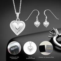 Whimsical Charm: Playful puffed-heart design crafted from timeless sterling silver, adding delightful simplicity to your look. Adjustable Necklace: Features a versatile 40cm chain with an additional 5.5cm extender for perfect fit and comfort. Ideal Gift: Beautifully minimalist set, ideal for romantic occasions or everyday elegance. Matching Elegance: Includes complementary hook earrings (20mm) to effortlessly enhance your style. Premium Quality: Made from hallmarked 925 sterling silver for lasting durab...