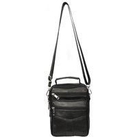 Men's Leather Crossbody Messenger Bag Black Multi Zip Pockets Adjustable HOL6968