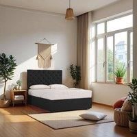 Knight Sleep Athens Plush Bed Set With Mattress, 2 Drawers Same Side & 24"Headboard in Black | Size: Double