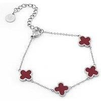 Say It With Plum Crystal Clover Bracelet - Silver Elevate your everyday style with the timeless elegance of the Plum Crystal Clover Bracelet in Silver. Crafted from durable stainless steel, this piece features a sleek silver-toned chain paired with a dazzling clover charm adorned with a radiant plum crystal at its heart. Designed to be both chic and versatile, the bracelet measures 6.5 inches with a 1-inch extension, ensuring a comfortable and adjustable fit for any wrist. Its delicate yet striking desi...