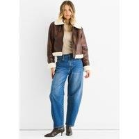 The Brown Faux Leather Shearling Fur Aviator Jacket combines bold style with casual comfort. Featuring a soft shearling lining and durable faux leather exterior, it keeps you warm and cozy while making a confident fashion statement. Perfect for layering on cooler days, this jacket effortlessly elevates your everyday look. | Gini London Women's Brown Faux Leather Shearling Fur Aviator Jacket | Size: 14 - Manufacturers part number: Gini London_5061094585540