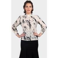This high neck lace blouse reveals a mysterious charm with a soft penetrating pattern of a gentle flower, with a pinkish beige color. Regular Fit Model: wears UK size 10 and is 510/177cm tall | LBV Fashion Women's Floral High Neck Lace Blouse in Beige | Size: 14