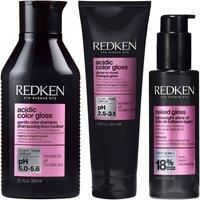 Set includes:- Redken Acidic Color Gloss Shampoo 300ml- Redken Acidic Color Gloss - 1 Min Gloss-in-Mask 250ml- Redken Acidic Color Gloss Naked Gloss 100mlRedken Acidic Color Gloss Shampoo 300ml:Level up your colour-care and activate glass-like shine up to 3-days (Consumer test using full system of Acidic Color Gloss) using the Acidic Color Gloss Shampoo. This revolutionary technology combines an advanced pH formula and Acidic Shine Complex, so your colour remains vibrant with a professional gloss after ...