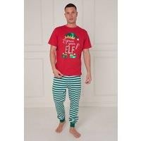 Get into the festive spirit with our Mens Christmas Pyjama Set, featuring a fun and playful Express Your Elf design. Perfect for the holiday season, these pyjamas are made from 100% soft cotton, ensuring maximum comfort while you relax, lounge, or sleep. The set includes a bright red short-sleeve top with a festive elf print and matching green and white striped bottoms for a classic Christmas look. Ideal for cosy nights in, Christmas morning gift opening, or matching family pyjama photos. Our model is 5...