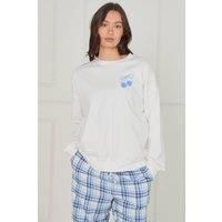 Slip into something soft, cosy, and irresistibly cute with our Sweet Side 100% cotton pyjama set. Designed for relaxed evenings and slow mornings, this ultra-comfortable duo pairs a soft white long-sleeve top with a light blue tartan check trouser the perfect blend of comfort and style. The top features a subtle cherry logo on the front and a bold, feel-good graphic on the back that reads Living Life on the Sweet Side, making these PJs a must-have for anyone who loves playful, uplifting loungewear. The ...