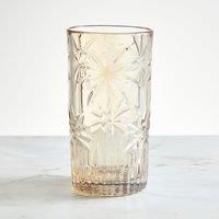 * Made from high quality glass* Unique embossed palm pattern* Subtle amber colourway* Dishwasher safe This stunning amber highball glass with a luxe palm embossed design is the perfect piece to complement your dining table, looking simple yet stylish. Simply pop it in the dishwasher to clean. Wash before first use. - Manufacturers part number: 30797551