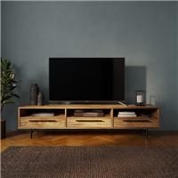 Dunelm Exclusive - Designed and Developed by Dunelm* 3 drawers* 3 fixed shelves* Black metal handles* Metal legs* 3 cable holes on back panel Say goodbye to dull and drab furniture! This eye-catching TV unit is sure to give your living space a fashionable upgrade. Crafted with high quality mango wood effect, this unit offers 3 drawers, 3 fixed shelves and stylish black metal handles. To keep all those pesky cables in check, the back panel features 3 handy cable holes and sturdy metal legs provide optima... - Manufacturers part number: 30802034
