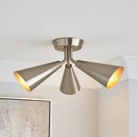 * Modern Cone shaped shades* Requires 3 x bulbs (not included)* Compatible with a dimmer switch* Available in another colourway* Matching family items available Available in a choice of two stunning colourways, this Cone 3 Light Ceiling Fitting has been designed with three cone shaped shades encased over its bulbs. It's compatible with a dimmer switch, so you can set that perfect, cosy ambience no matter the occasion. Good things come to those who coordinate, so match this fitting with its family items... - Manufacturers part number: 30817278