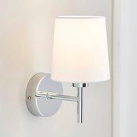 * Modern, chrome design* Fabric shade* Compatible with a dimmer switch* Available in other colours Enhance your space with the modern and sleek design of the Prescot Wall Light. The chrome finish adds a touch of sophistication, while the fabric shade softens the light for a warm and inviting ambience. This wall light is compatible with a dimmer switch, allowing you to adjust the lighting to suit your mood. Available in a range of colours, you can choose the perfect shade to complement your decor. - Manufacturers part number: 30834341