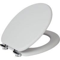 * Made from FSC-certified MDF - hard-wearing* Stainless Steel Hinges - rust proof* Wipe Clean* Part Assembly Required Perfect for any bathroom style, this grey toilet seat has been constructed from hard wearing discarded wood shavings and fibres.. The stainless steel hinges are rust proof and the toilet seat has been with a soft touch rubber coating. Part assembly is required and can be wiped clean. - Manufacturers part number: 30856068