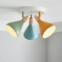 * Bulb required: 3 x 6W SES (Small Edison Screw) - E14 Round* Bulb not included* Dimmable compatible* Adjustable shades* Available in other colours* Perfect for kids bedrooms Offering a fresh contemporary design, the Wolston 3 light spotlight is perfect for giving your home a light, scandi feel. Perfect for any space, this stylish fitting features three adjustable white conical shades, complete with light wood effect toppers for a natural touch. - Manufacturers part number: 30856961