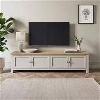 Dunelm Exclusive - Designed and Developed by Dunelm* Wooden TV Unit* Suitable for Large T Vs* Brushed Brass Handles* Full Assembly Required Made with oak wood grain paper foil, this unit showcases visible shelves and internal shelving for organised storage. Its stable construction and TV stand design provide ample space for your devices and accessories. Complete with brushed metal brass handles and high-quality fittings and hinges, this unit offers both durability and style. Cable holes facilitate a tid... - Manufacturers part number: 30861017