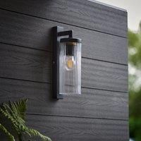 * Clear ribbed glass shade* Suitable for outdoor and bathroom use* Compatible with a dimmer switch and bulb* Matte black finish The clear ribbed glass shade casts a warm and inviting glow, adding a touch of sophistication to your exterior or bathroom decor. Crafted to withstand various environments, this wall light is suitable for both outdoor and bathroom use, offering flexibility in placement. Designed for compatibility with a dimmer switch, it allows you to tailor the lighting ambience to suit any mo... - Manufacturers part number: 30869746