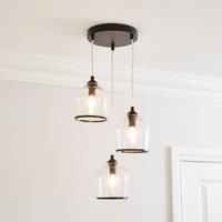 * 3 x clear bubble textured glass shades* Required 3 x bulbs (not included)* Finished trim* Adjustable height* Compatible with a dimmer switch* Matching family items available* Available in another colourway Add a luxury finishing touch to your home with our Lenny 3 Light Cluster Ceiling Fitting, made with three textured glass shades all of which are adjustable in height. They're compatible with a dimmer switch so you can set the perfect ambience depending on the occasion. It's delicately finished wit... - Manufacturers part number: 30798652