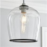 * Easy fit pendant* Clear Bubbled Glass Shade* Easy Fit Good for Renters* Dimmable with suitable bulb & light switch* Other colours available* Matching Family items available The Lenny Easy Fit Pendant is beautifully crafted with bubbled glass and an elegant trim, available in a choice of chrome or black trim finishes for a vintage yet contemporary appearance. The Lenny easy fit pendant is the perfect piece for adding a classic look to your home with a modern twist. This piece is dimmable compatible, ma... - Manufacturers part number: 30753378