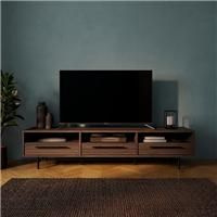 Dunelm Exclusive - Designed and Developed by Dunelm* 3 drawers* 3 fixed shelves* Black metal handles* Metal legs* 3 cable holes on back panel Say goodbye to dull and drab furniture! This eye-catching TV unit is sure to give your living space a fashionable upgrade. Crafted with high quality mango wood effect, this unit offers 3 drawers, 3 fixed shelves and stylish black metal handles. To keep all those pesky cables in check, the back panel features 3 handy cable holes and sturdy metal legs provide optima... - Manufacturers part number: 30876563