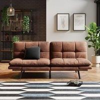 * Modern Sofa Bed* Clic Clac Design* Trendy Leather Upholstery This sofa bed boasts a warm tan faux leather upholstery that exudes timeless elegance. The quilted detailing not only adds a touch of sophistication but also enhances the comfort of the seating and sleeping experience. With its clic clac mechanism, transitioning from a plush sofa to a comfortable bed is effortlessly simple. - Manufacturers part number: 30885319