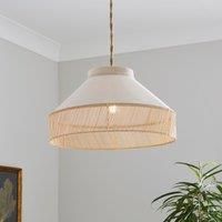 * Boho-Inspired Design* Suede & Rattan Detailing* Easy Fit - No Electrician Required! Brighten up your space with the Tristane Boho Easy Fit Pendant Shade. Its suede and rattan construction adds a touch of boho style to any room. With an easy fit design, no electrician is required! Simply pair it with your own lighting flex for hassle-free installation. - Manufacturers part number: 30894937