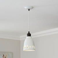 * Industrial-Inspired* Olive Cut-Out Detail* Adjustable Height Featuring a stunning dome shade with olive cut-out detail, this pendant light merges industrial inspiration with effortless luxury. The white fabric cables and adjustable height make it a versatile and elegant addition to any room. - Manufacturers part number: 30898546
