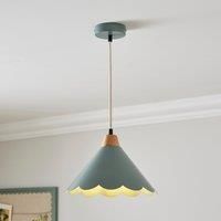 * Scalloped Edge* Metal Pendant with Wood Detailing* Statement, Eye-Catching Design This lovely pendant light features a scalloped edge and a matt finished metal shade with natural wood detailing; it's the perfect statement piece for any room! - Manufacturers part number: 30898678