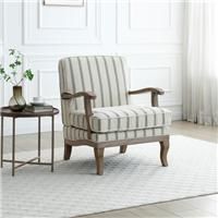 * Soft Woven fabric* Grey washed curved arms* Cutaway design This chair features a sophisticated blend of contemporary design and timeless comfort, perfect for any modern living space. Its sleek, grey-washed arms, gently curved to enhance both form and function, offer a subtle nod to mid-century modern aesthetics, while the cutaway design on the back and seat adds a unique, eye-catching element. The seat and backrest are upholstered in a beautifully textured striped fabric, adding a layer of visual inte... - Manufacturers part number: 30915925