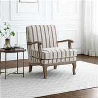 * Soft Woven fabric* Grey washed curved arms* Cutaway design This chair features a sophisticated blend of contemporary design and timeless comfort, perfect for any modern living space. Its sleek, grey-washed arms, gently curved to enhance both form and function, offer a subtle nod to mid-century modern aesthetics, while the cutaway design on the back and seat adds a unique, eye-catching element. The seat and backrest are upholstered in a beautifully textured striped fabric, adding a layer of visual inte... - Manufacturers part number: 30915926