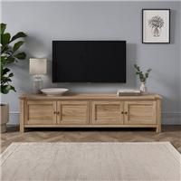 Dunelm Exclusive - Designed and Developed by Dunelm* Wooden TV Unit* Suitable for Large T Vs* Brushed Brass Handles* Full Assembly Required Made with oak wood grain paper foil, this unit showcases visible shelves and internal shelving for organised storage. Its stable construction and TV stand design provide ample space for your devices and accessories. Complete with brushed metal brass handles and high-quality fittings and hinges, this unit offers both durability and style. Cable holes facilitate a tid... - Manufacturers part number: 30918567