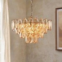 * Gorgeous, Memorable Design* Features Champagne Lustre Glass Discs* Brushed Brass Finish* Adjustable Height* Dimmable Compatible - Requires Dimmable Bulb & Switch* Requires: G9 Cap Type & Capsule Bulbs* Energy Efficient G9 LED Lamp Compatible This striking chandelier showcases layers of champagne lustre glass discs, creating a glamorous statement in any room. Finished in brushed brass, its adjustable and dimmable, giving you full control of both style and ambience. What's not to love£! - Manufacturers part number: 30920990