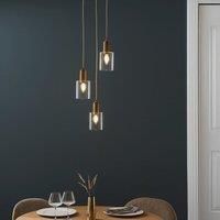 * Industrial-Inspired Design* Made from Durable Metal & Glass* Adjustable Height - Tailored Ambience* Dimmable Compatible - Needs Dimmable Bulb & Switch* Requires: E14 Cap Type & Golf Bulbs Eye-catching in design, the Fara Industrial 3 Light Cluster Ceiling Light is the perfect addition to your living space. Featuring adjustable height for tailored ambience, this piece has an antique-brass finish with clear, glass shades. - Manufacturers part number: 30921702