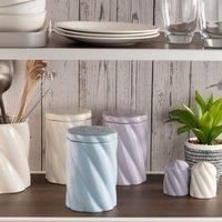 * Available in an array of colours* Made from 100% Stoneware* Dishwasher safe Keep your kitchen stylish and organised with this contemporary twisted ceramic canister. Made from durable stoneware, it offers both practicality and charm, while being dishwasher safe for easy cleaning. Perfect for storing all your essentials, it adds a modern touch to any countertop. Whether you're storing biscuits, sugar, or coffee, this canister has you covered. Pair it with other matching products for a coordinated look,... - Manufacturers part number: 30922851