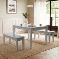 Dunelm Exclusive - Designed and Developed by Dunelm* 1 x Dining Table and 2 x Dining Benches* Wooden frame* Drawer for storage The Lynton dining bench set, available in grey, natural, and white, combines seating and storage in one stylish piece. Designed with a built-in drawer, this bench set offers a discreet yet spacious solution for keeping dining essentials, linens, or household items neatly stored away. Its sturdy construction ensures durability, while the neutral colour options allow it to complem... - Manufacturers part number: 30929237