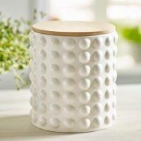 * Available in a range of colours and sizes* Made from 100% Stoneware* Fun bobble design Add a playful touch to your kitchen storage with this Bobble Canister with Wooden Lid, where style meets everyday function. Crafted from premium stoneware with a tactile bobble design, it's a charming way to keep your bits and bobs neatly stored. The natural wooden lid adds warmth and contrast, creating a lovely balance of tone and texture. Perfect for tea, coffee or sweet treats, it's as practical as it is eye-ca... - Manufacturers part number: 30966042