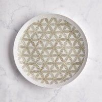 * Charming leaf motif* Coordinating items available* Crafted from porcelain Serve up your favourite snacks in style with our gorgeous Global Sage Side Plate. . Crafted from fine porcelain, this elegant plate features a charming sage leaf pattern that repeats seamlessly, adding a fresh and natural touch to any meal. Perfect for side dishes, snacks, or light meals, its both microwave and dishwasher safe for easy use. The subtle decal design enhances its sophisticated look, making it a versatile addition t... - Manufacturers part number: 30968305