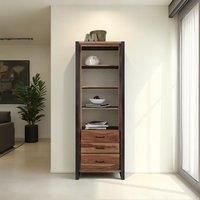 * Solid wood frame* Metal legs* Natural wood finish* Modern design A perfect blend of practicality and style, the logan bookcase is designed to bring effortless organisation to your home. Crafted from solid Sheesham wood with a natural finish, it highlights the woods rich grain and warm tones, adding a touch of rustic charm. Its open shelving provides ample space for displaying books, ornaments, or treasured keepsakes, while three spacious drawers offer concealed storage for a clutter-free look. The sle... - Manufacturers part number: 30985769