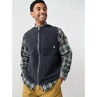 Farah F Tab Abbott Fleece Gilet Size & Fit True to size - order your usual size Regular fit Regular length Available in sizes S - 2XL Details F Tab Abbott Fleece Gilet by Farah Navy Fleece fabric Collarless neck Sleeveless Zip-through fastening Chest patch pockets Subtle tab branding to the chest pocket Material & Care Material Content: 100% Polyester Washing Instructions: Machine Washable